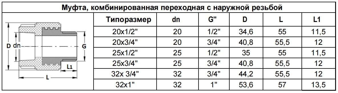 Муфта комбинированная-наружная резьба